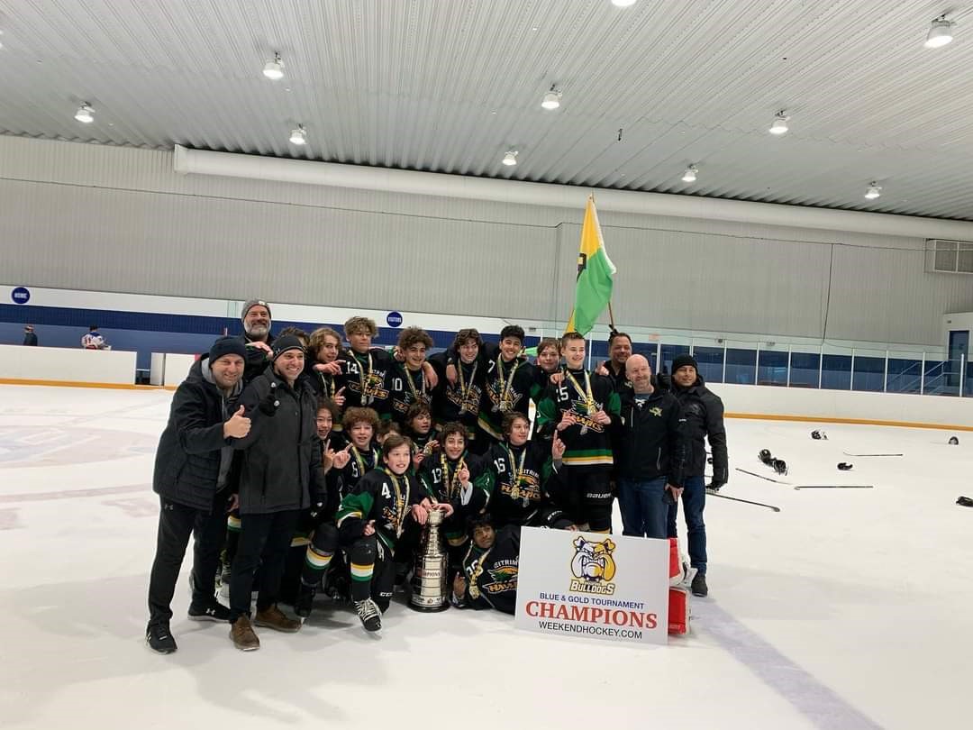 Leitrim Hawks U15 A1 team came on top with a successful 6 -1 win over the Oakland Rangers Daigle team. This win comes as part of a 2nd chance from playing this team from our initial 3-game round robin placement. Thanks to the entire team for putting 110% effort through the entire weekend in spite of losing one game with the Oakland Rangers Lipsit team. A special thanks to all of the coaches (Mark B, Mark S, Jason K, Steve V) with there great leadership skills in delivering the motivational and tactical messaging to all of the players and to our management staff (Cynthia & Dalida and entertainment staff (Tina) ) in orchestrating our accommodations and great evening at the Grey Goat Pub & Grill